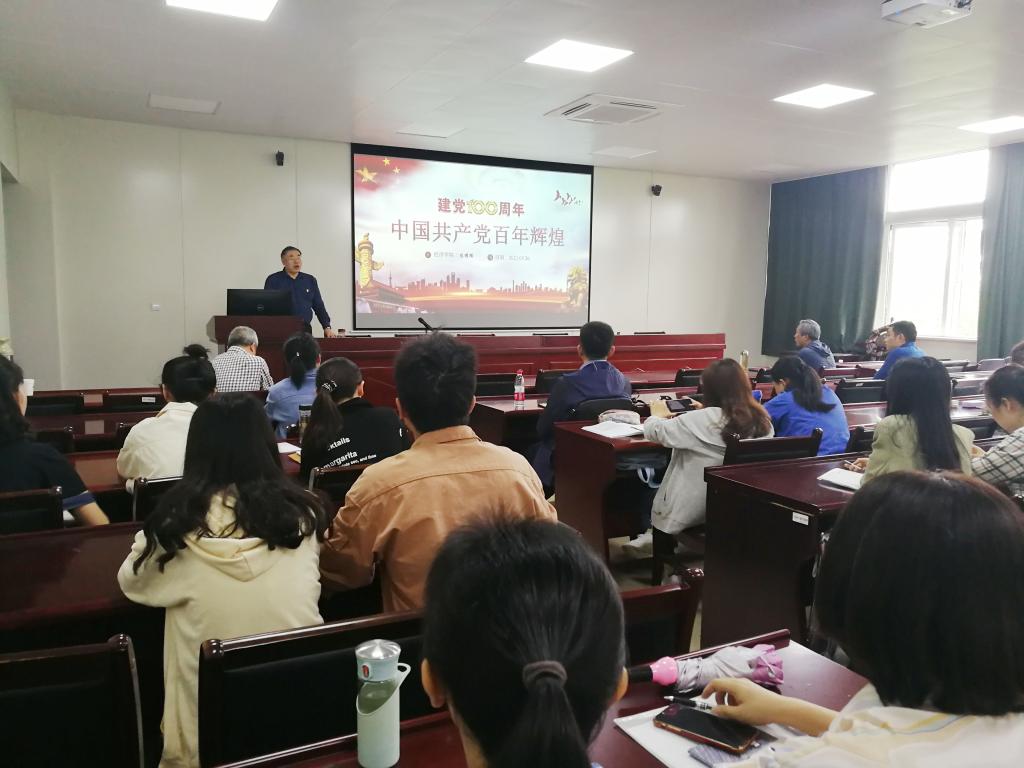 307会议室讲授题为“中国共产党百年辉煌”的专题党课。统计系教工党支部,教务处党支部、明星色情