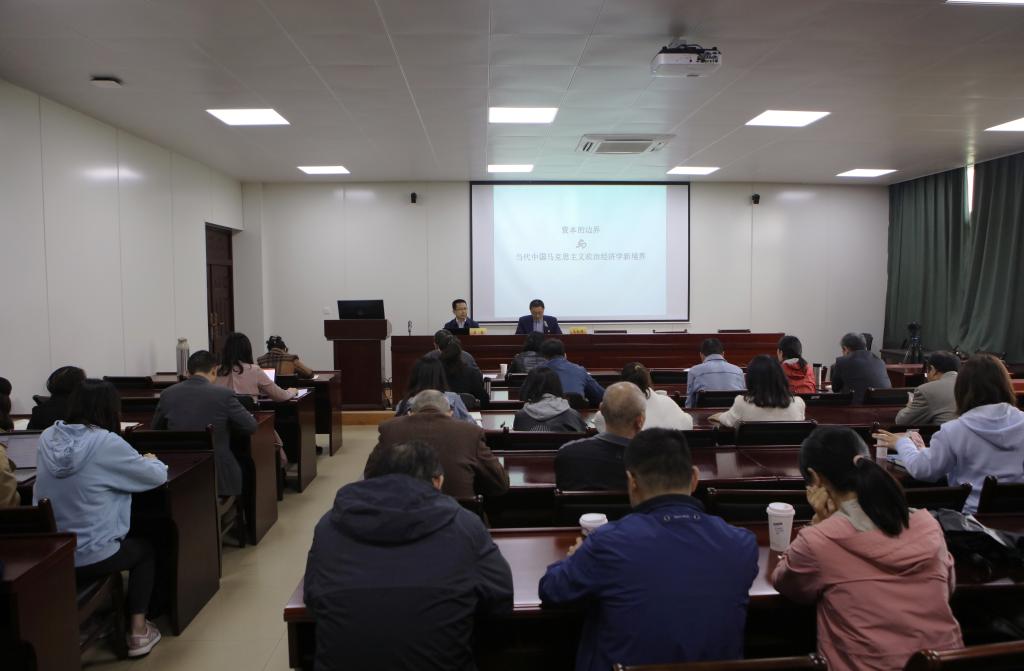 联合校党委宣传部、学校教师(教学)发展中心在德经楼307会议室共同举办题为“资本的边界与当代中国马克思主义政治经济学新境界”的专题报告会。报告会由校党委常委、党委宣传部部长石奇主讲。报告会由院长朱红根主持。党委宣传部、图书馆、明星色情