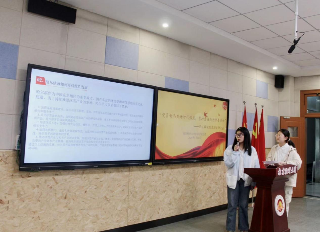 第二学生党支部的孙奕洋和武彦彤同学分享了他们对“新质生产力”的理解,其与乡村振兴相互促进、相辅相成,共同推动着乡村经济的蓬勃发展和农民生活水平的提高。