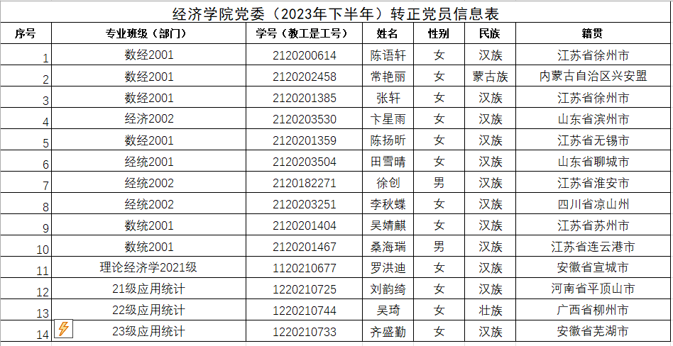在听取党小组和党员、群众意见的基础上,经支部委员会审查同意,近期将召开支部大会,拟同意陈语轩等14名同志转为中共正式党员。根据发展党员工作有关要求,现将其有关情况公示如下: