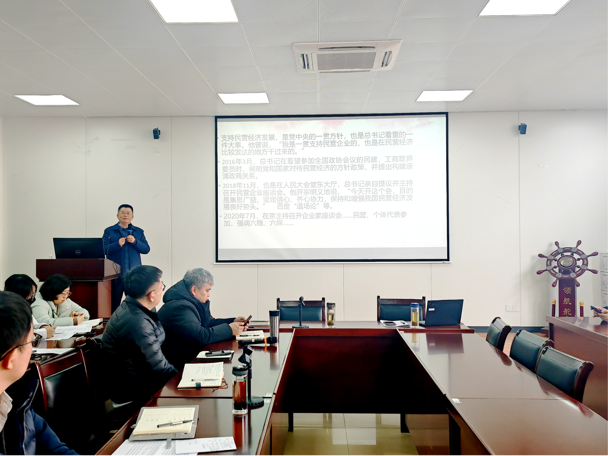 党委中心组扩大学习会在德经楼307会议室召开。本次会议聚焦学习习近平总书记在民营企业家座谈会上的讲话精神,旨在通过深入研讨,科学梳理企业经济关系,探索创新发展企业经济学的路径,为企业高质量发展贡献学科力量。学院领导班子成员、学院全体教职员工参加会议。