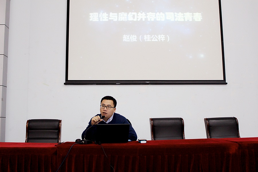 邀请,江苏省高级人民法院法官、作家赵俊先生在我校仙林校区经济学科楼报告厅作了题为“理性与魔幻并存的司法青春”的讲座。我校部分师生到场聆听讲座。