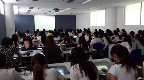 第二场培训吸引了更多大三学子。主讲人为校图书馆祝晓慧老师和同花顺、中经网等企业数据库培训师。首先,祝晓慧老师为同学们讲解图书馆电子资源的使用与文献综述写作的要领。她首先介绍图书馆电子资源的建构情况,让大家了解到校图书馆提供的大量可利用资源。接下来着重强调了CNKI和“读秀”两大中文数据库的重要性,从文献综述的构成要素、如何确定选题、如何根据选题查找资料以及CNKI的使用技巧四个方面对文献综述写作的步骤逐个进行了分析讲解。随后,企业的培训师讲解了同花顺ifund金融数据库和中经网统计数据库的使用方法,对明星色情