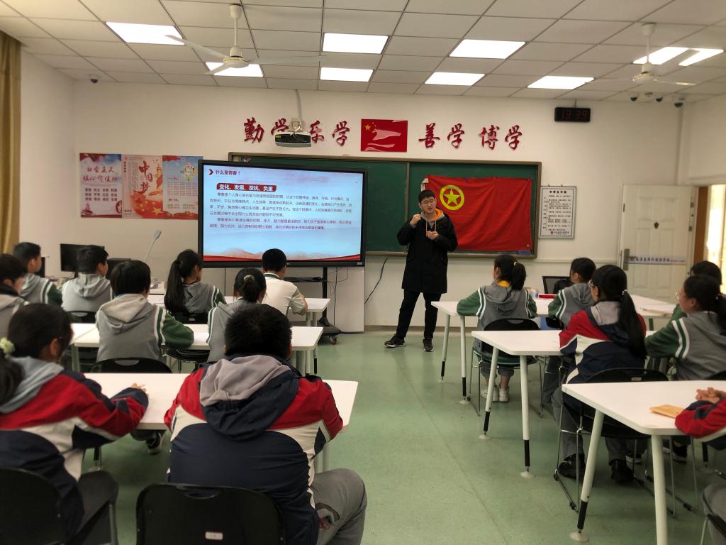 研究生党支部受邀前往秦淮外国语学校教育集团十八中校区,为21名入团积极分子讲授“奋斗·青春”主题团课。