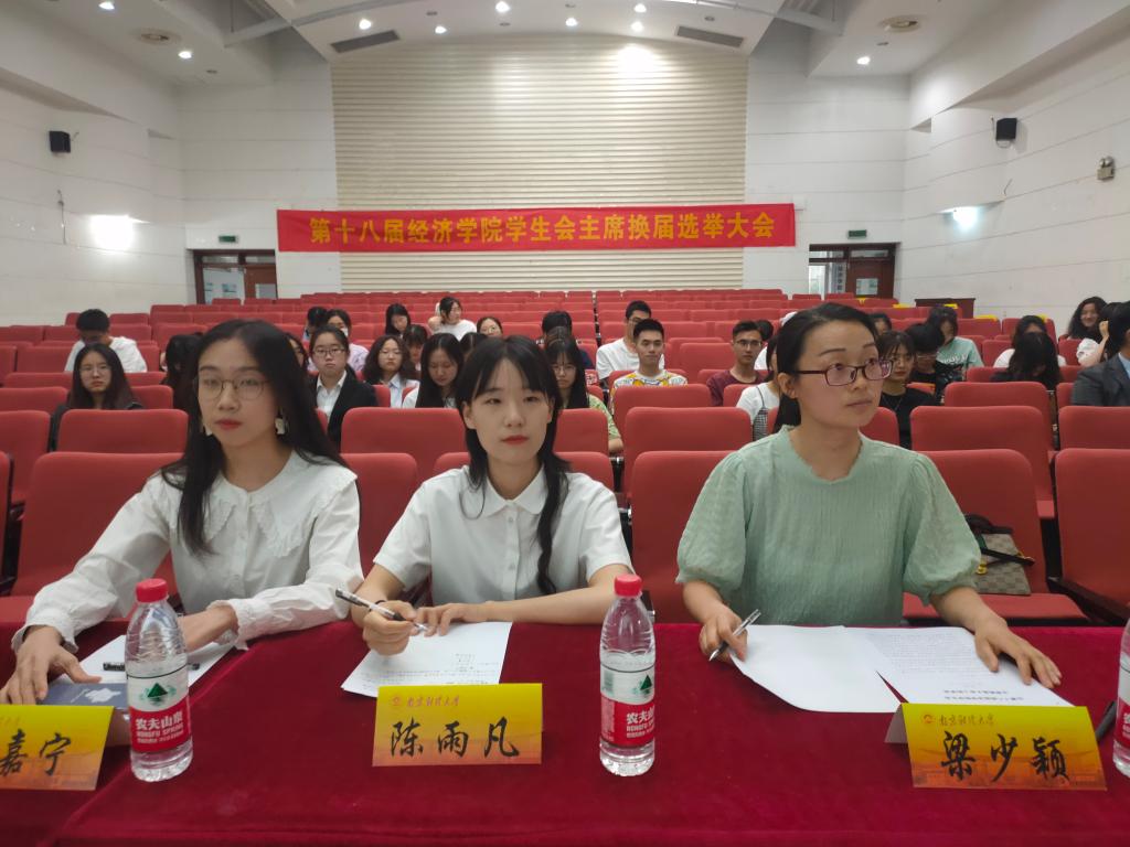 最后,秉承着公开、公平、公正的原则,新一届的学生会主席团成员由学生会全体成员投票产生,他们分别是行政办公中心陆丽珏,服务维权中心蒋宇,服务维权中心王笑。