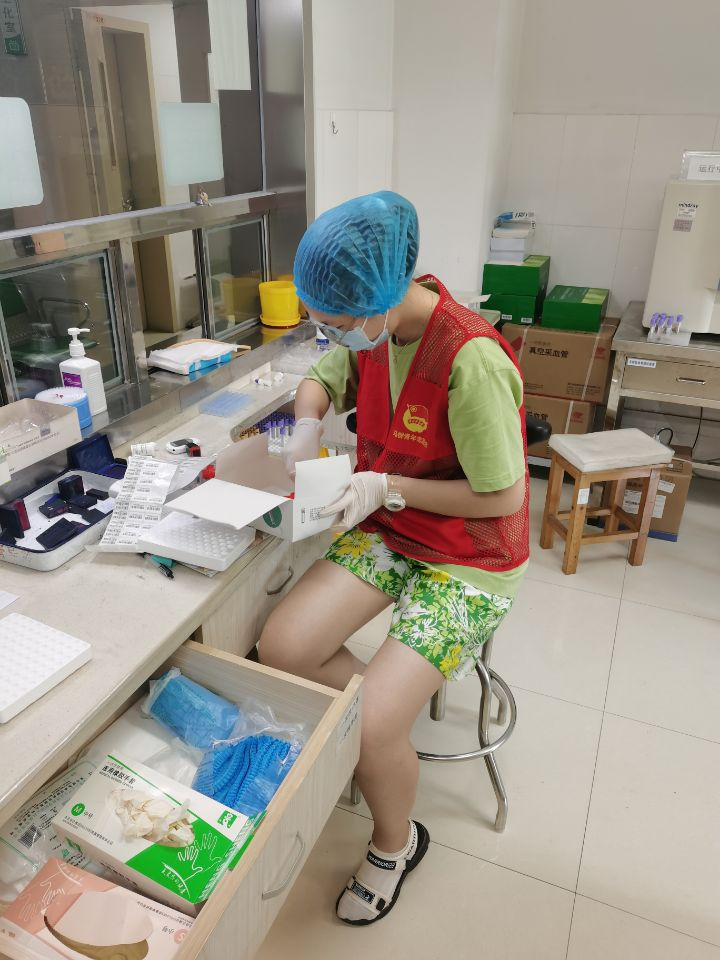 经济1902班的江昕同学昱,报名参加马群街道共青团助理,自7月12日起在马群社区医院和花岗疫苗接种点做志愿工作。第一阶段的志愿服务结束后,面对来势汹汹的南京疫情,她顾不上休息,毅然再次报名参加南京全城抗疫志愿服务中。7月21日,她投身南京全员核酸检测志愿服务中,面对市民各种提问,不厌其烦一一解答;看见发生争执的地方,她会立刻过去安抚排队群众,维持秩序。7月22日,她到南京站做志愿者,帮助每一位有困难的群众。她帮助一对有视力障碍的夫妻登记信息、测核酸,并送入地铁站;帮助一位有听力障碍的中年人在手机上操作核酸检测登记事项……一天下来,累得不想说话。有一次实在腿酸想坐下来一下,突然看到眼前一位位医护人员闷在防护服里,一刻不停地采样,立马又放弃了的念头,继续投入战斗。7月23日,江昕昱返回马群街道在核酸普测点继续做志愿者。“抗击疫情,我在行动”,江昕昱说:“检测体温、整理登记信息表、维持秩序、进行咨询答疑等,虽然个人的力量微不足道,但能为家乡、为社会、为祖国奉献自己一份力量,让我更有激情和信仰。这次的抗疫志愿活动,给我提供了一个接触社会的机会,一个锻炼自己的机会,更让我看到了在危机面前,南京人民的团结、互助和勇敢,相信我们一定胜利,南京加油!”