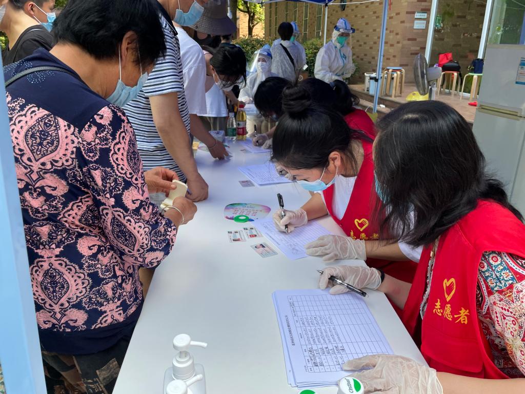 学生抗疫志愿者在核酸检测点进行信息登记