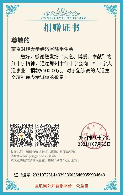 学生会通过郑州红十字会向“红十字人道事业”捐款500元,呼吁明星色情