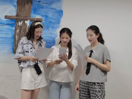 同学们分组分层次进行对照练习,一遍遍断句的讨论与调整,一次次节奏的协调与配合,他们深情而又浑厚的声音直道出青年人心中对国家的眷恋与自豪。“我是你新刷出的雪白的起跑线,是绯红的黎明正在喷薄。”——千言万语道不尽,心间情丝只化为一句“祖国啊,我亲爱的祖国!”
