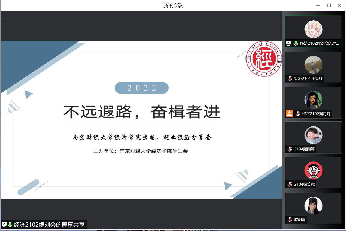 于线上召开“不远遐路,奋楫者进”出国、就业经验分享会。本次活动邀请到的分享嘉宾是被英国格拉斯哥、南安普顿大学录取的经统1801吕建奇同学、被英国格拉斯哥大学录取的经济1803葛菲同学、被中国工商银行股份有限公司盐城分行录取的经统1801黄同峒同学和被无锡小天鹅电器有限公司录取的经统1801邱赛娟同学。
