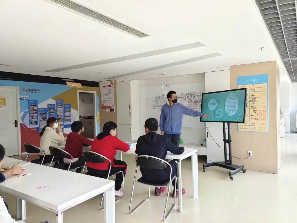 的志愿者们来到南京市雨花睿泽障碍人士服务中心开展“金秋十月,与爱同行”志愿活动,通过讲授安全知识小课堂、与残障青少年共同制作手工黏土,为服务中心的障碍人士们带去秋日的一份温暖。