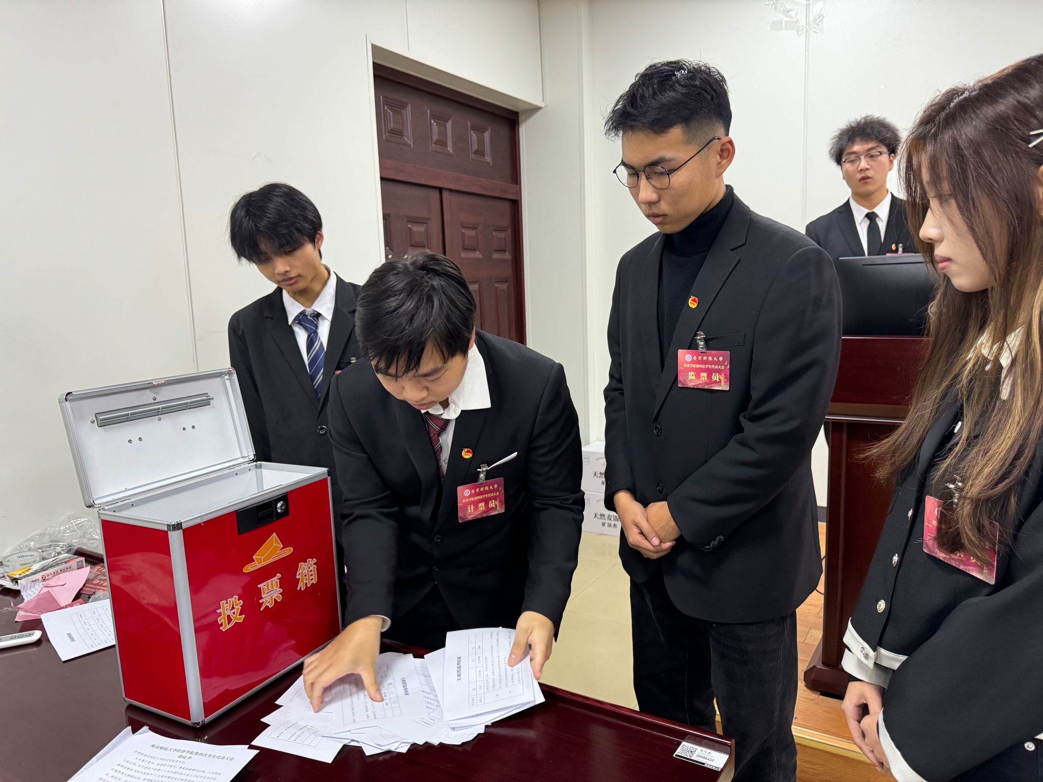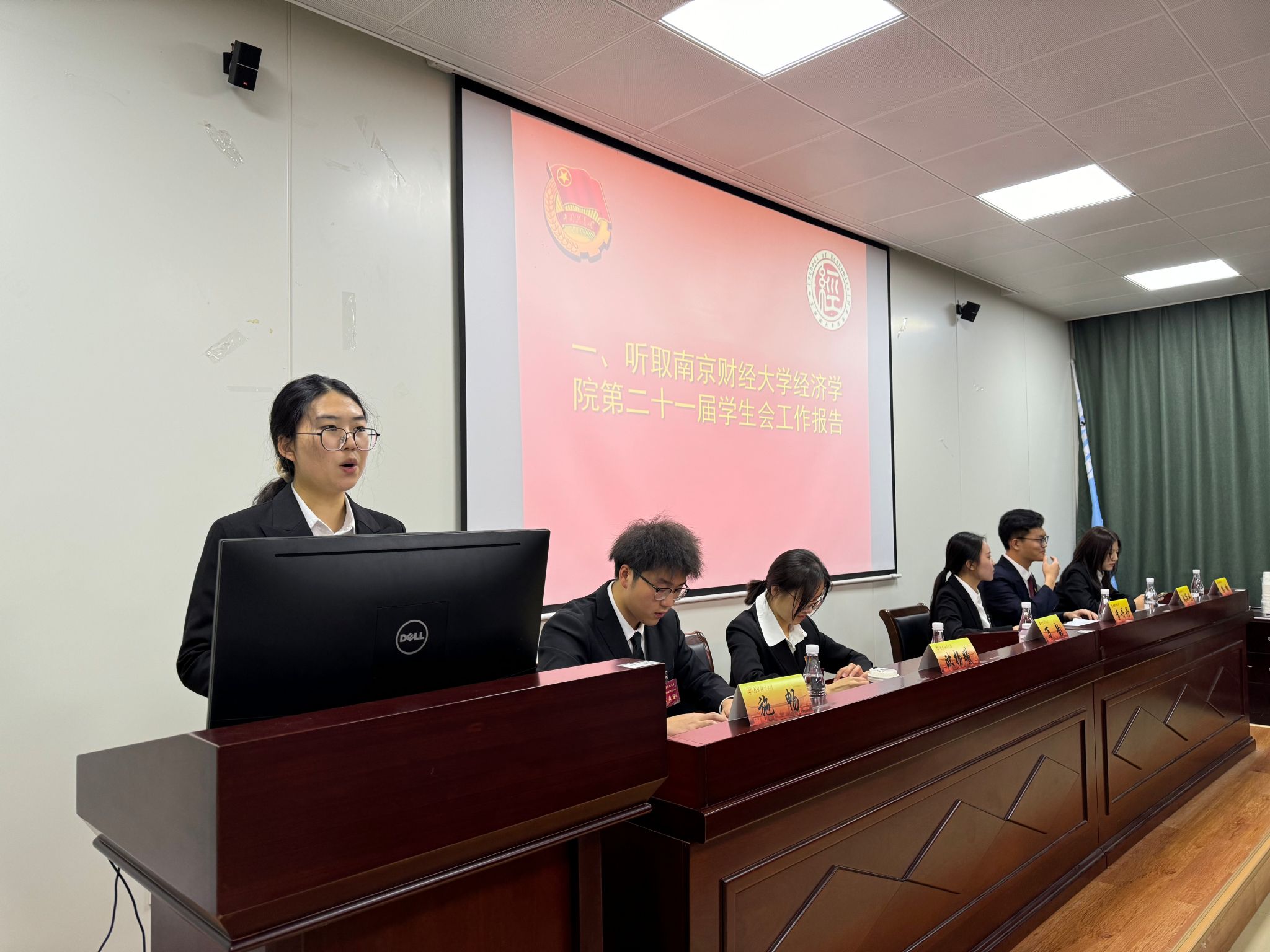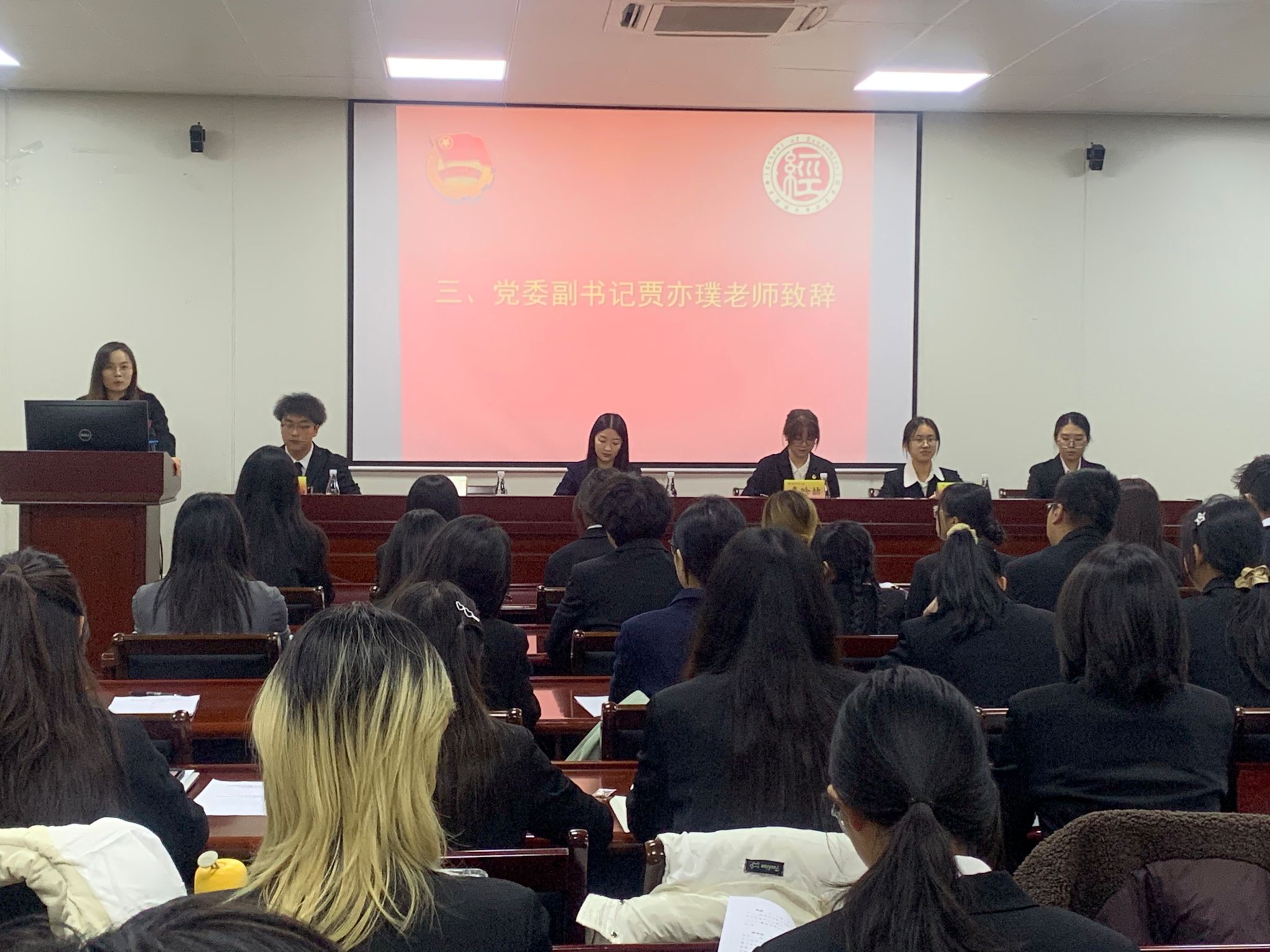 第四次学生代表大会在德经楼307会议室隆重召开。学院党委副书记贾亦璞老师,院团委书记潘怡老师,兄弟学院学生会主席代表,学院全体学生代表参加会议。本次学代会还收到部分兄弟院校的祝贺与支持。