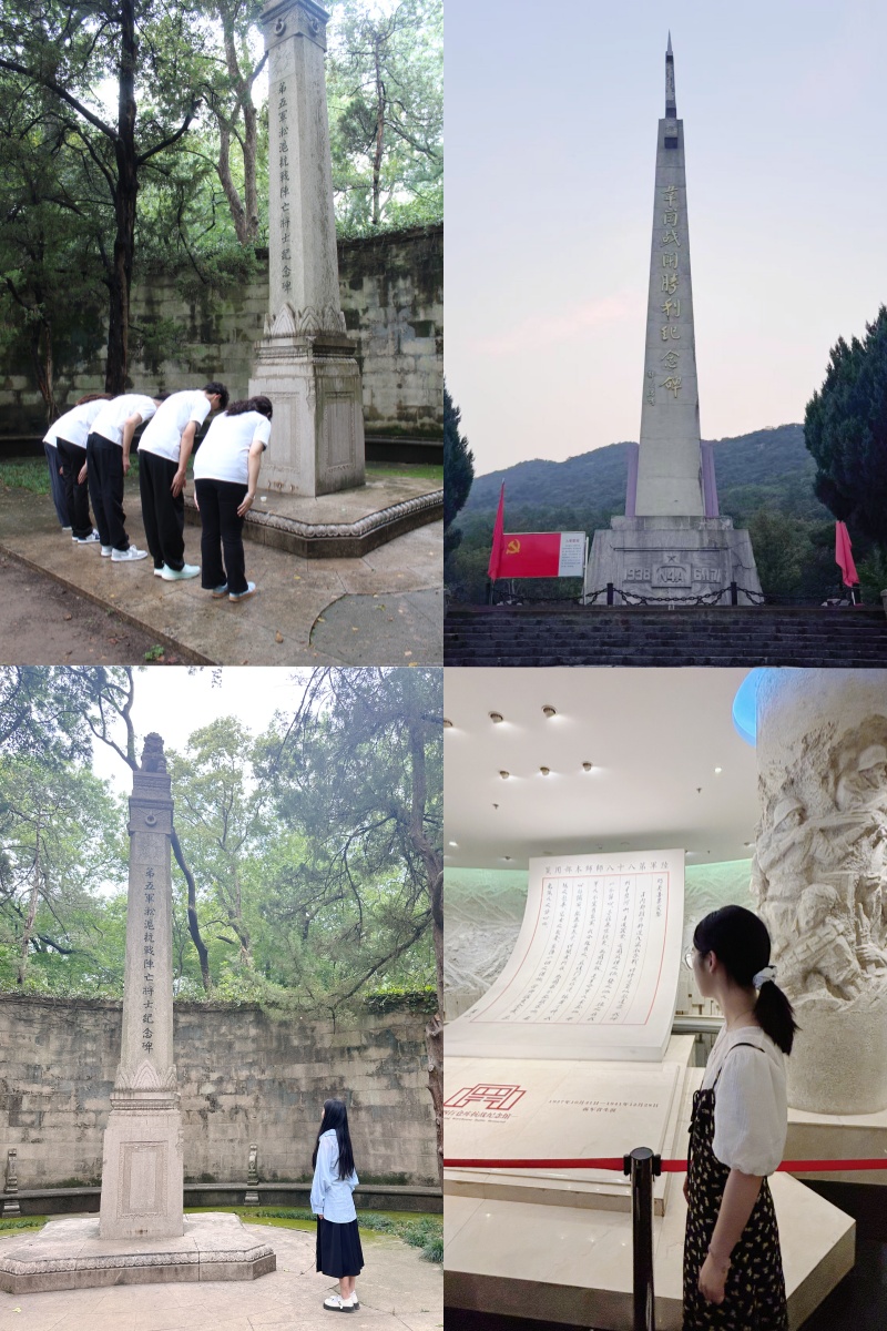 不同实践点位上的感悟交织共鸣让学子们深刻认识到,无论是庙行大捷中八十八师将士的殊死搏杀、四行仓库里“八百壮士”的孤军坚守,还是刘老庄八十二烈士的壮烈殉国,这些不同时空的英雄壮举,都凝聚着中华民族面对危难时的不屈脊梁与家国担当。“从杭州的纪念碑到刘老庄的英烈墓,每一处都在诉说着‘为国捐躯’的重量,这不是书本上的文字,而是真真切切刻在民族骨血里的精神力量。”经济2402班王清秋在实践心得中写道。同学们纷纷表示,这些矗立的纪念碑与凝固的英雄群像,不仅是历史的见证,更是精神的坐标,提醒着青年一代要永远铭记先烈们用热血铸就的民族精神,将这份感动与敬意转化为勤学笃行、报国为民的实际行动。