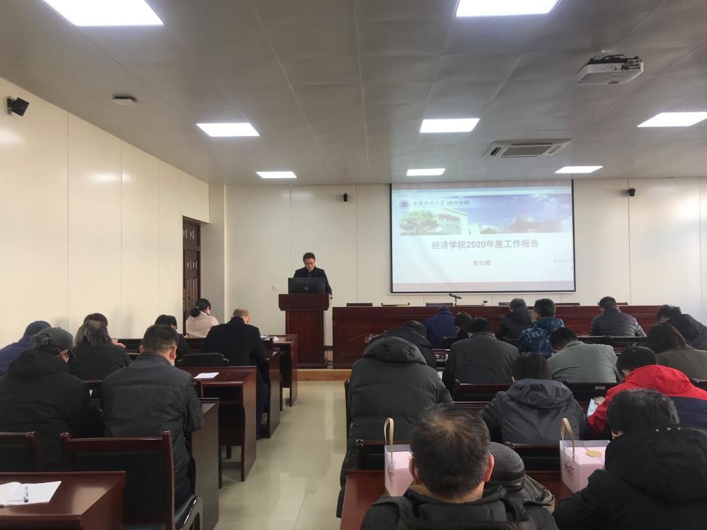 首先,由朱红根院长代表学院领导班子做2020年度工作报告。他从党建工作、本科教学、科研工作、研究生教育、学科建设、人才队伍建设、学生工作等方面对学院2020年的工作做了全面总结,接下来对学院2021年的工作目标做出规划,鼓励老师们再接再厉,在新年里要有新目标、新气象和新收获。