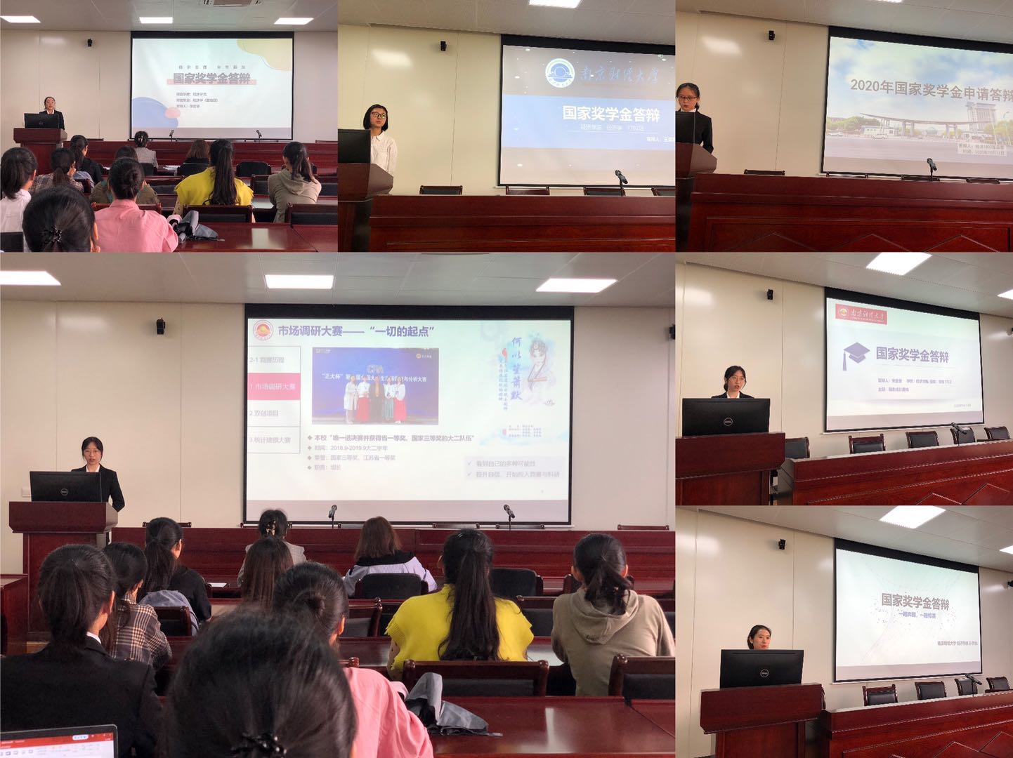 经过学生个人申请和学院初审,最终6名同学进入学院评审答辩环节。各位候选人按照抽签顺序依次通过PPT展示及个人陈述的方式,分别从个人的思想状况、学习成果、科研创新、社会实践等方面进行汇报展示,并就评委提问给予一一解答。