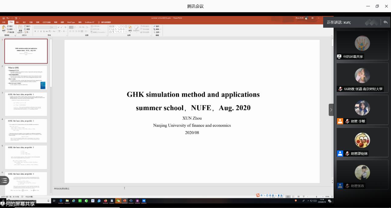 寻舟副教授为暑期学校的学员们作了题为“GHK模拟方法及其应用”的专题讲座。
