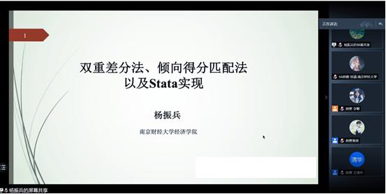 杨振兵副教授为暑期学校的学员们作了题为“双重差分法、倾向得分匹配法以及Stata实现”的专题讲座。