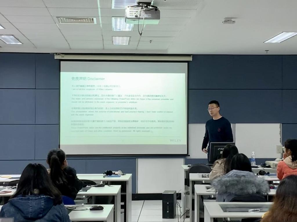 12月24日,Wiley的高级销售经理孙志蓬先生做了《利用Wiley高品质商业及经管类资源发表国际论文》的精彩讲座。讲座从Wiley资源高效利用作为出发点,详解了Wiley出版社的历史,以及著名的资源汇聚平台Wiley Online Library平台上的高影响力期刊、电子书等内容资源,并针对性的讲解了Wiley在经济、商业管理、金融以及统计四个细分学科方面的优质期刊,引导学生了解SCI,SSCI,期刊影响因子等重要学术评价指标;随后,孙老师详细向同学们讲述了Wiley Online Library在线资源平台的使用方法,重点介绍了平台上各种功能按钮的作用以及检索和筛选文章的方法,对于如何甄别一本期刊的影响力以及在所处学科的位置也进行了介绍。