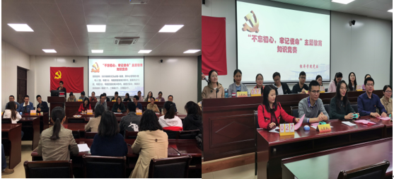 比赛分三个阶段进行,首先是7支队伍进行现场答题,设置必答题、抢答题两个等环节,决出一等奖一名、二等奖两名和三等奖三名。竞赛内容涵盖习近平总书记“不忘初心、牢记使命”主题教育系列重要讲话、党的十九大报告、《习近平新时代中国特色社会主义思想学习纲要》《习近平关于“不忘初心、牢记使命”论述摘编》《中国共产党章程》《中国共产党党组工作条例》《中国共产党支部工作条例(试行)》《中国共产党廉洁自律准则》《中国共产党纪律处分条例》等方面。接着是现场的全体党员师生参加应知应会笔试测试,旨在加强党员自身的理论学习,提升党员党性修养。经过激烈的角逐,最后的颁奖仪式由学院书记陈耀辉、学院院长朱红根和学院副院长张成出席,统计系教工支部荣获了冠军,行政教工支部和经济系教工支部获得了竞赛二等奖,本科生第一支部,本科生第二支部和研究生第一支部获得了三等奖。