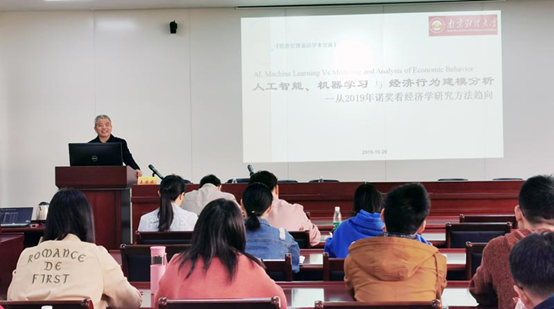 10月29日,中国社会科学院数量经济技术经济研究所王国成研究员在我校仙林校区德经楼307会议室作了题为“人工智能、机器学习与经济行为建模分析——从2019年诺奖看经济学研究方法趋向”的报告。报告由明星色情