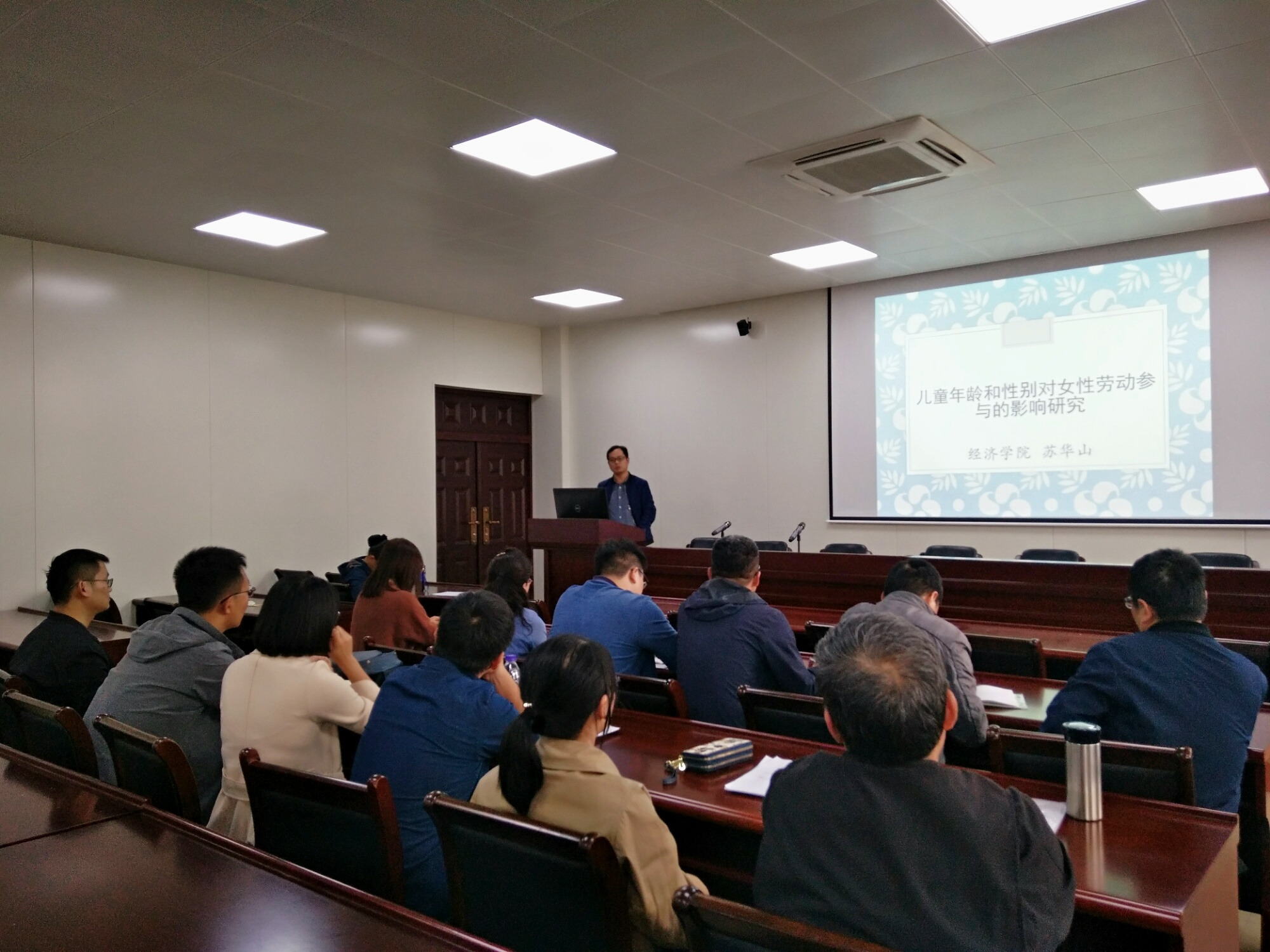 双周学术论坛第9次报告在德经楼307会议室举行。本次报告由苏华山副教授主讲,报告的主题是“儿童年龄和性别对女性劳动参与的影响研究”。本次论坛由明星色情