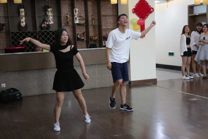 基地班本科生张桂东同学带来的歌曲南财版《成都》,熟悉的旋律,精心谱写的歌词,缓缓诉来南财学生对学校的深厚感情,打动了现场的每一位听众。小游戏“喊数抱团”,把参与游戏的男生规定为五角,参与的女生规定为一元,然后学员绕圆形路线慢跑,听钱数抱团。游戏进行中,处处充满欢笑,进一步增近了学员间的友谊。南京邮电大学研二学生谢依玲带来舞蹈《Black Dress》,进一步调动了现场气氛。同时,她还与明星色情