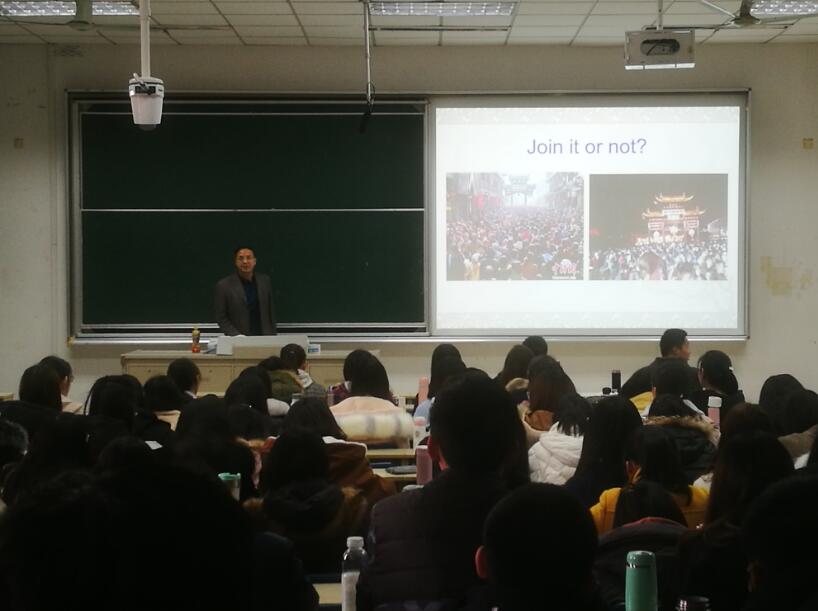 邀请,南京市人社局直属南京市职业技术培训指导中心许宏报主任在德经楼103教室为2016级经济学专业同学带来“做好人生规划,适应职场发展”主题讲座。讲座由朱龙杰副教授主持。