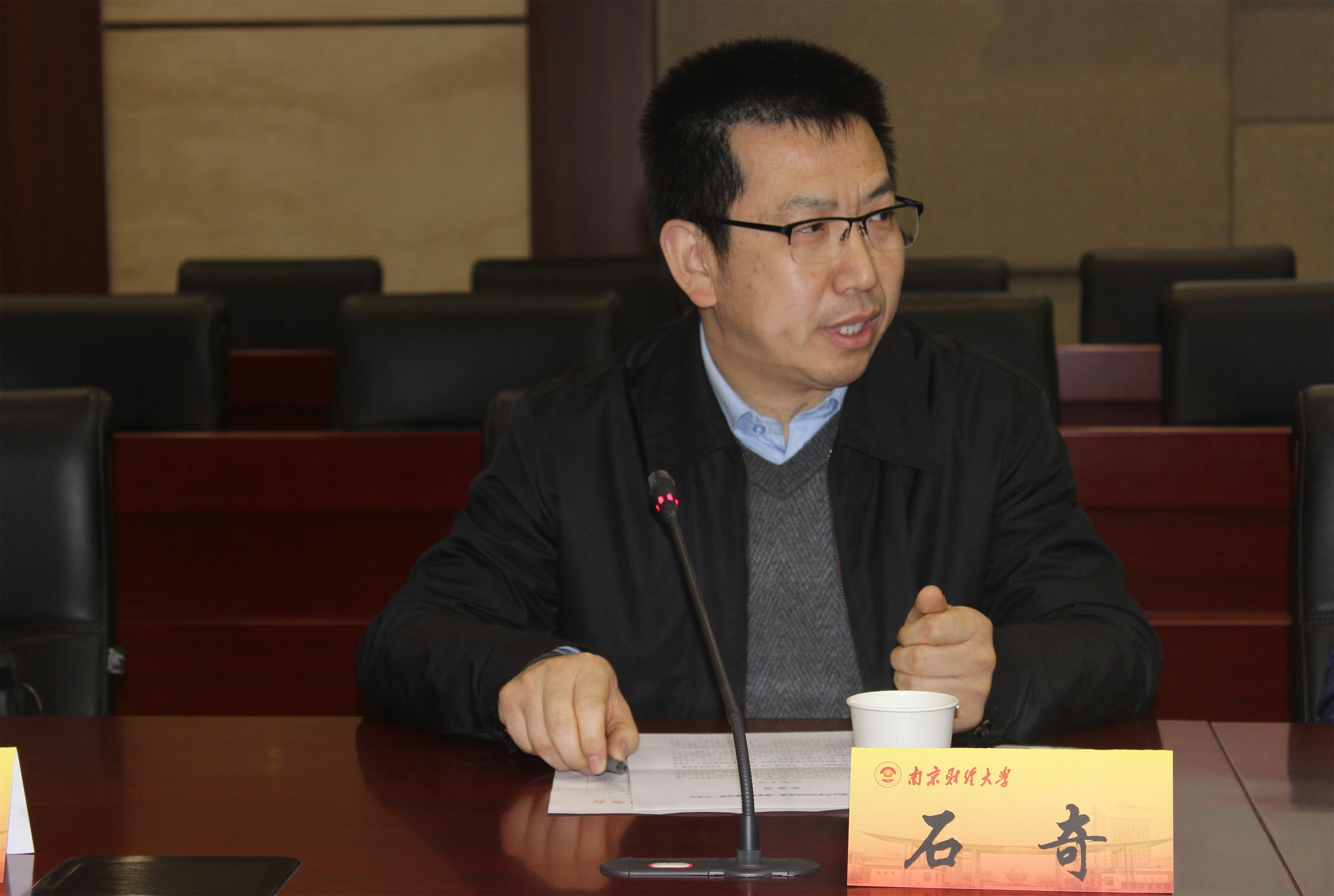 院长石奇教授致辞,他首先对本次大会的顺利召开表示热烈祝贺,对与会的各位专家表示热烈欢迎。紧接着向与会的各位专家详细介绍了我校的基本情况以及办学特色,并表示今后要在十九大精神的指引下,与研究会各成员单位共同努力,为推动江苏开放型经济又快又好发展贡献一份力量。