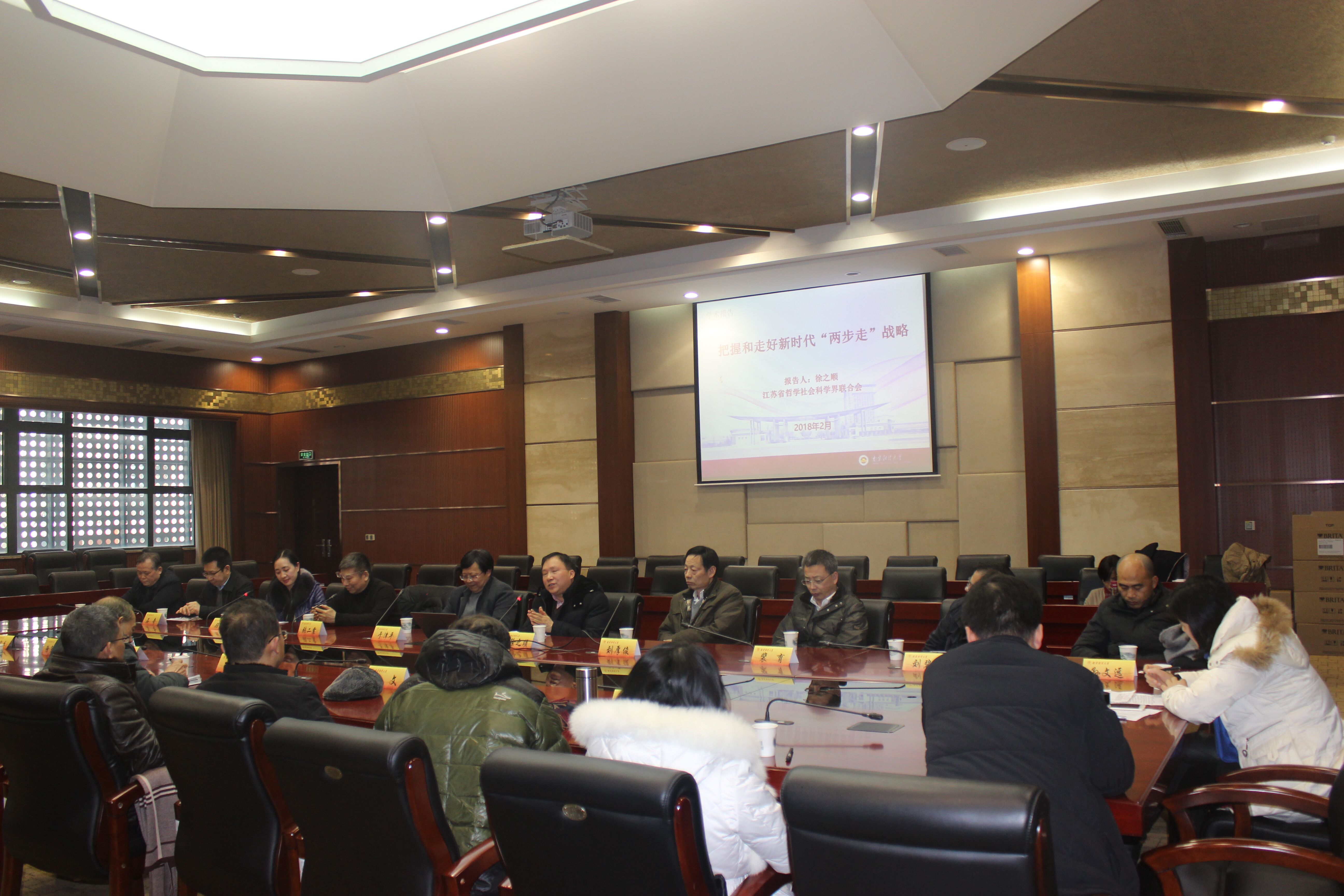 2月2日,江苏省外国经济学说研究会第八届常务理事会第二次会议在我校仙林校区工科楼二楼会议室举行。此次会议的主题是:全面贯彻党的十九大精神,把握和走好新时代“两步走”战略,为推动江苏开放型经济又快又好发展做出新贡献。来自江苏省社科联、南京大学、南京师范大学、江苏大学、明星色情