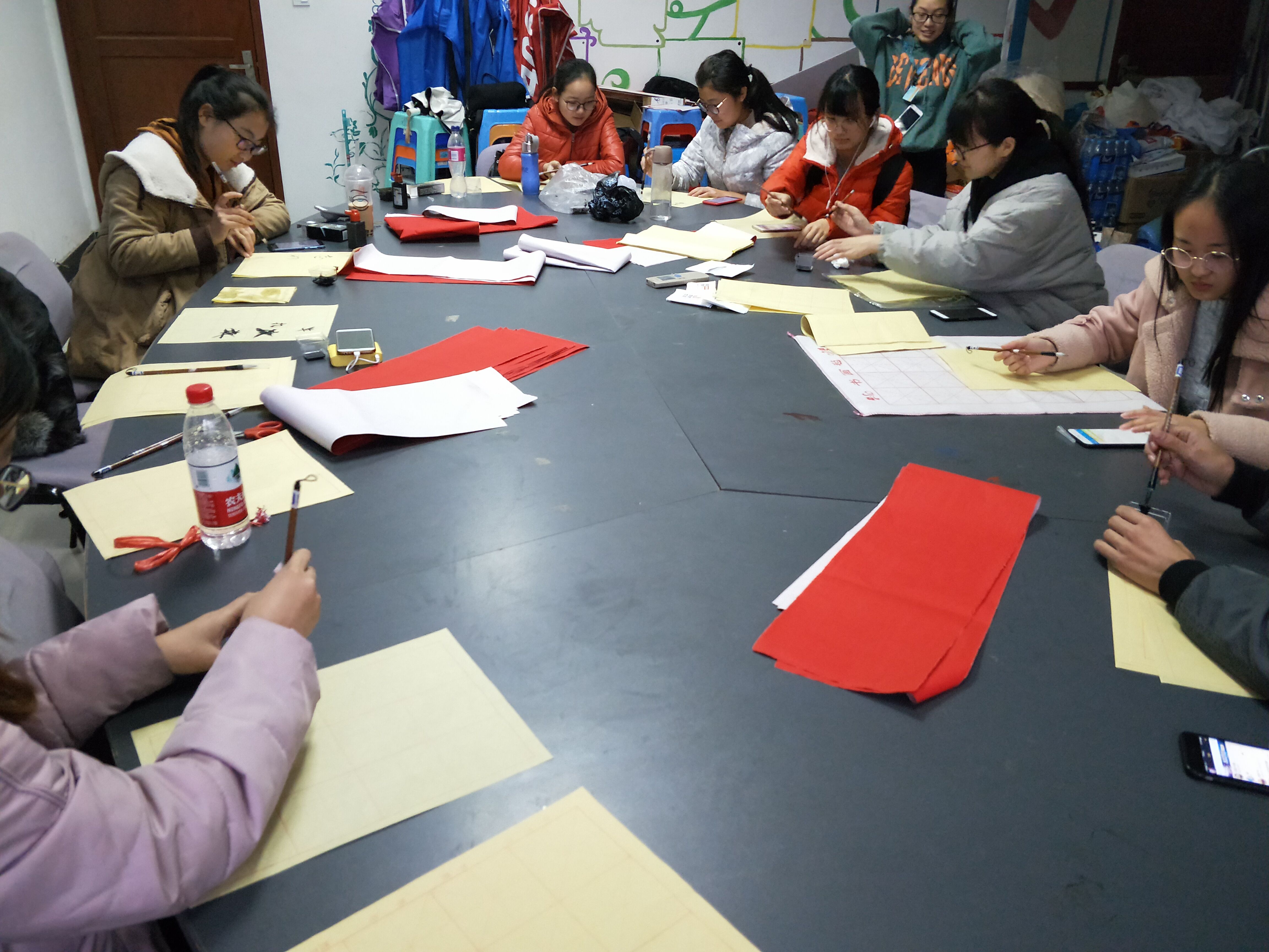 1月2日晚,在德正楼345室,同学们聚精会神,铺纸研墨,将对祖国诚挚的祝福、对新年热切的期待溢于字里行间。“百年霁月,十九风光,金陵才彦初展翼。弱冠意气,桃李青葱,经世济民正当时”;“治国,怀五千年梦想前行,直抵复兴彼岸。为学,践十九大精神戮力,奋描经院蓝图”;“十九大宏开,南财飘香;一八年高歌,经院辉煌”……同学们将各自对十九大精神的理解,与中华传统对联文化相结合,以充满浓郁中国年味的方式表达出来,不仅彰显着当代青年对中华优秀传统文化的继承和坚守之心,也映射出当代青年对祖国进入发展新时代的期盼和祝愿之意。
