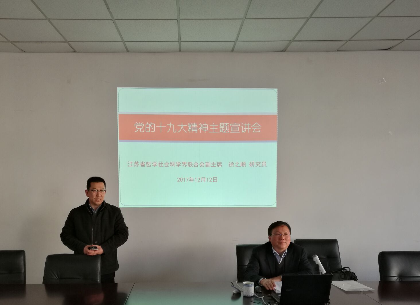 德经楼307室举办学习十九大精神专题辅导讲座,邀请江苏省哲学社会科学界联合会副主席徐之顺主讲。讲座由明星色情