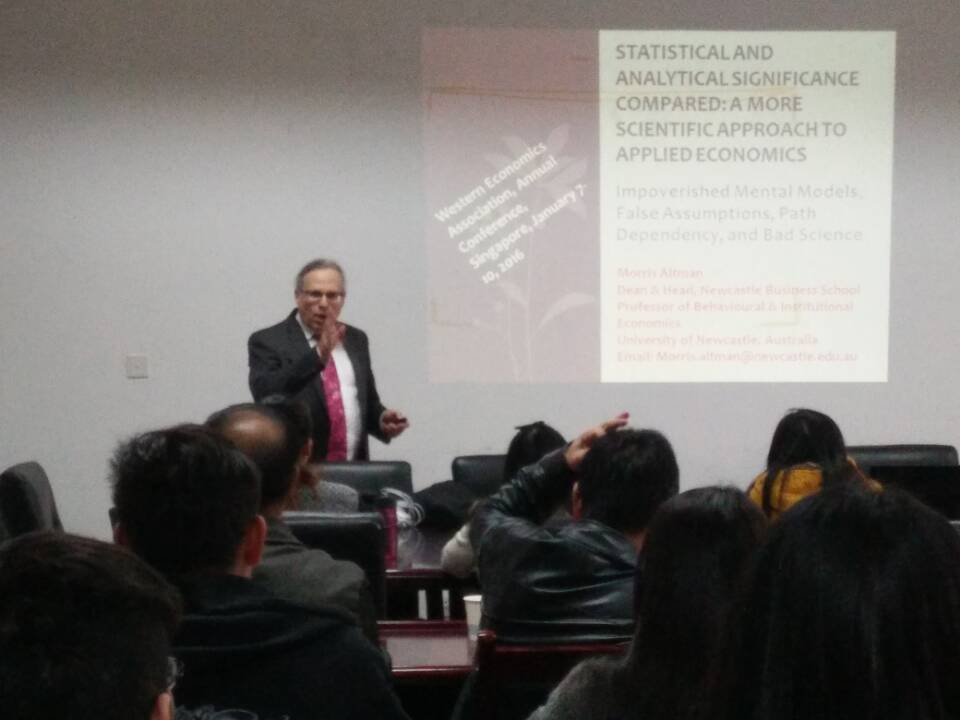 邀请,澳大利亚纽卡斯尔商学院院长莫理斯•阿特曼教授在经济学科楼307室举行了一场题为“Statistical and Analytical Significance Compared: A More Scientific