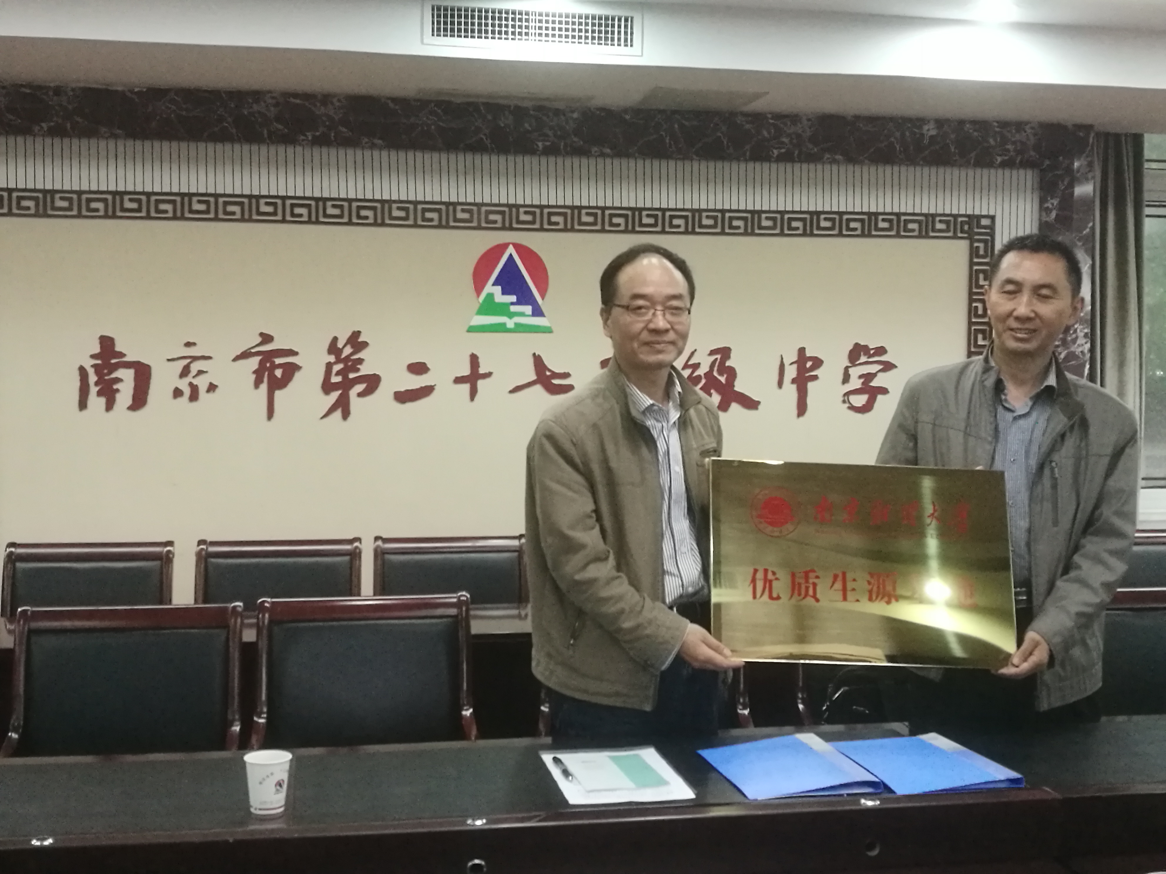 优质生源基地”签约授牌仪式。南京市第二十七中学校长吴卫兵、党委书记周桂茹、副校长鞠党生出席签约授牌仪式。明星色情