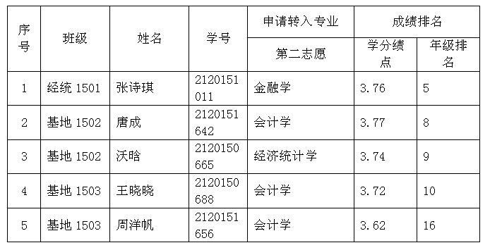 2016年7月5日 2015级本科生转专业第一志愿申请学生名单汇总表