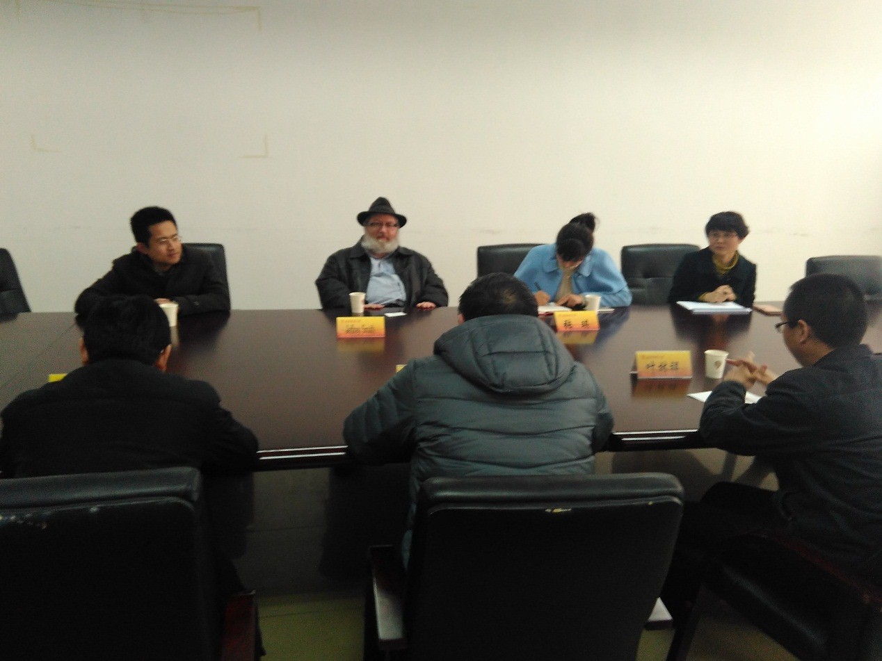 对Jeffrey教授的到来表示热烈欢迎,并表示将尽最大努力为外教创造良好的工作和生活环境。目前已经为外教配备了一位助手和一间工作室,Jeffrey教授对此表示感谢。尹敬东副院长从学术研究的角度与外教进行了简短交流,双方表示愿意进一步加强学术交流,碰撞思想火花。周绍东主任与外教就具体教学工作安排做了交流。