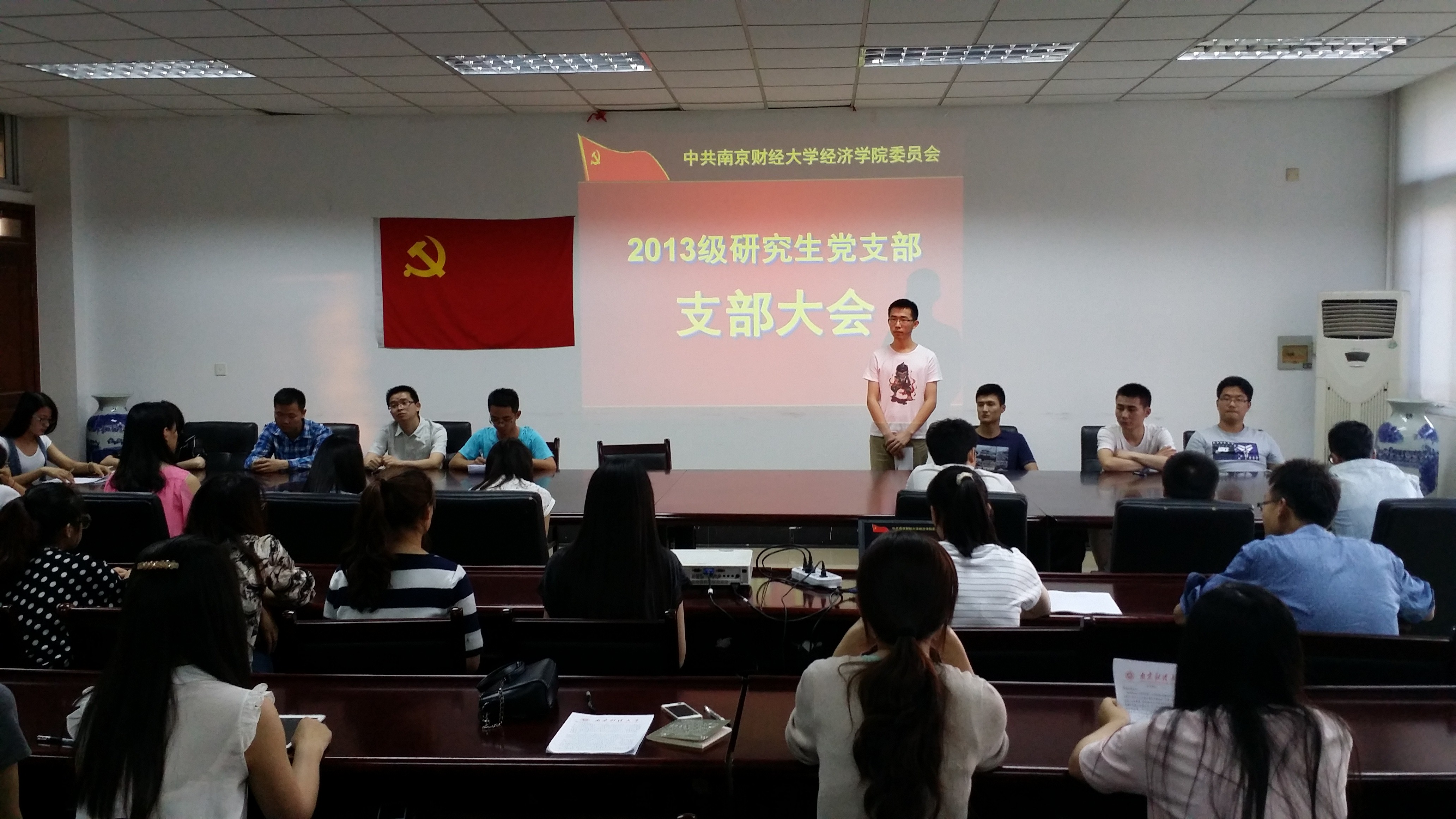 307会议室召开支部大会。机关党委书记、党委组织部副部长、党校副校长孙彬,院党委副书记郝园园,院学生第二党支部书记黄晓娟,研究生秘书王竹君等老师旁听了此次支部大会。支部大会由2013级研究生党支部书记朱盼盼同学主持,全体2013级研究生党员参加了此次会议。