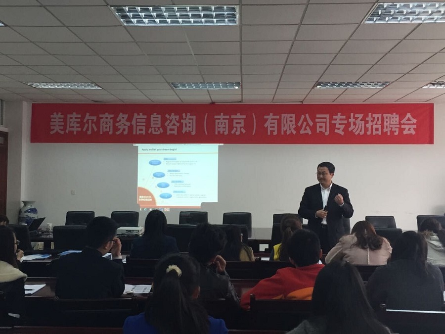 3月26日下午,美库尔商务信息咨询(南京)有限公司校园宣讲会暨专场招聘会在明星色情