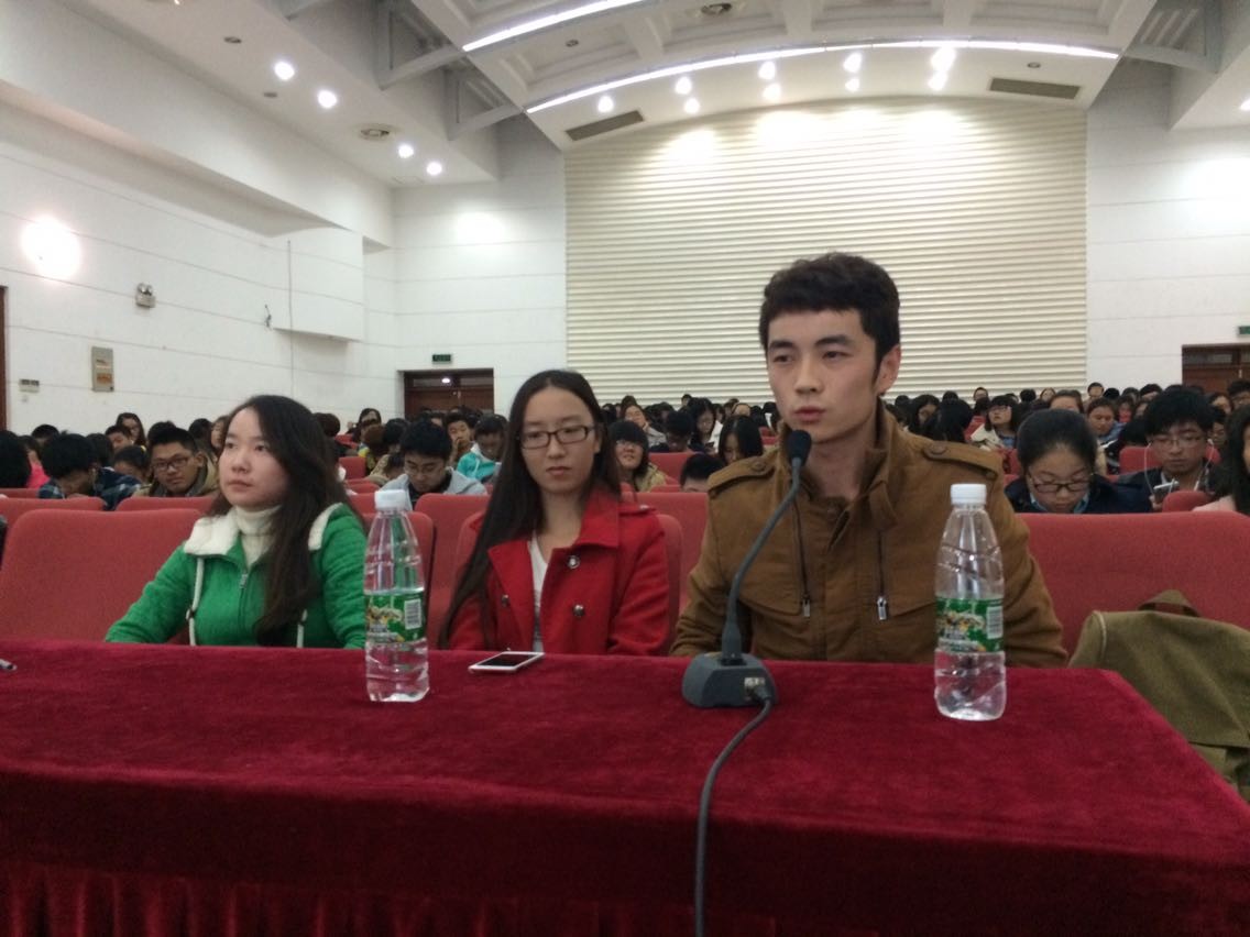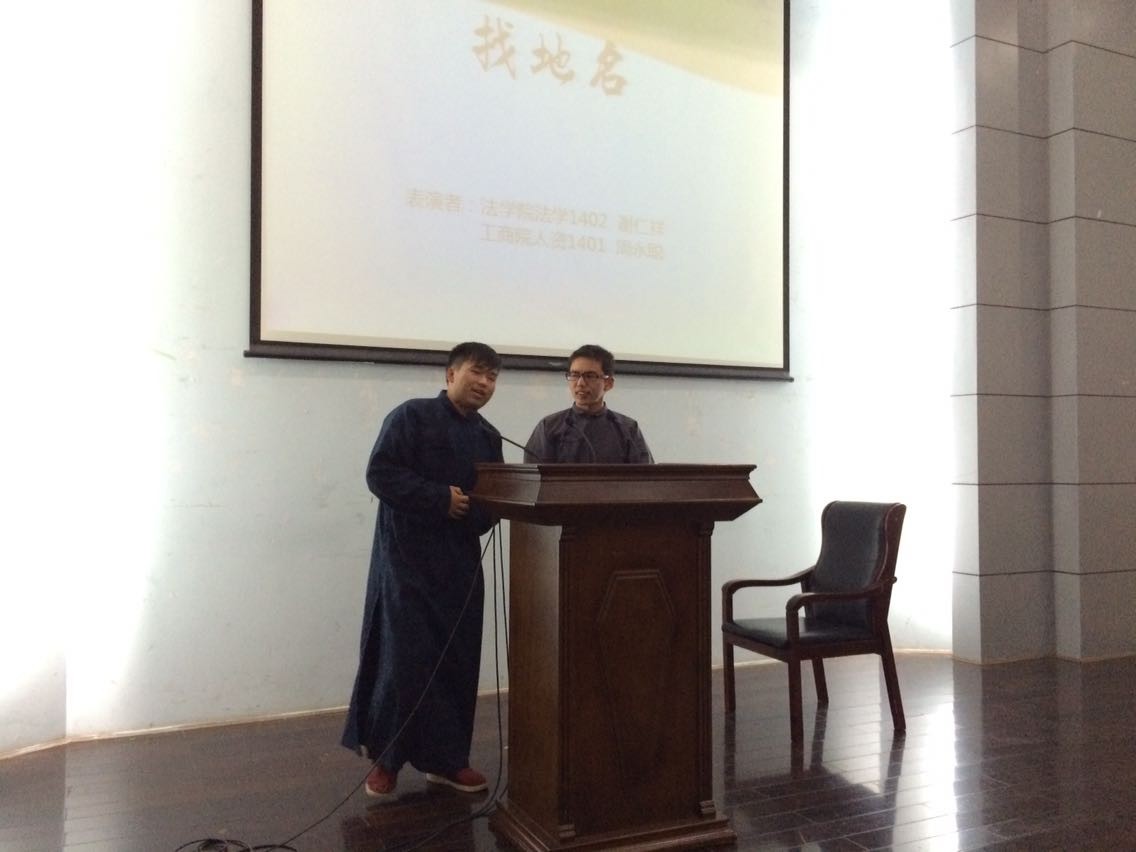 比赛开始,全场座无虚席,选手们畅谈了自己对核心价值观的理解,彰显了当代大学生积极向上的精神风貌。精彩的演讲不断博得同学们的掌声和喝彩声,现场气氛十分活跃。在比赛进行到一半时,“逗你玩”相声社的两位部员为同学们带来了精彩的相声表演《找地名》,搏得席下观众阵阵欢笑和掌声。随后的演讲依旧精彩纷呈,每位参赛选手都精神饱满、感情充沛、表达流畅,他们富有感染力的演讲打动了评委老师和在场观众。与此同时,三位评委认真仔细为选手打出成绩。比赛即将结束时,评委们进行了精彩的点评,号召同学们努力践行社会主义核心价值观,通过日常的行为积极传递青春正能量,为实现中国梦奉献自己的力量。