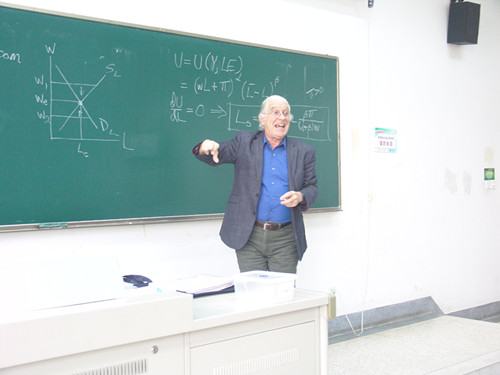 莱伯曼教授的报告主题是:在新古典经济学和政治经济学之间寻求融合与选择。在他看来,以数理模型为主导的宏微观经济学并不能全面地解释现实问题,而政治经济学则能很好地弥补这一不足。讲座中他以三个经济模型作为例子生动地阐释了他的思想,指出两种经济学之间应该相互完善、互为补充,由此可以进一步开阔经济学的研究视野,丰富经济学的研究方法。讲座后,莱伯曼教授还详细解答了师生们的提问,介绍了他的最新研究成果。他生动而严谨的讲学让在场师生获益颇丰。