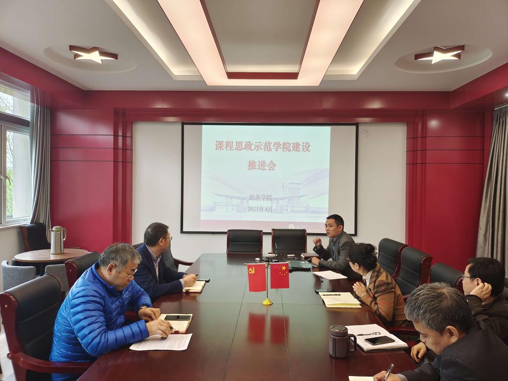 在德经楼329会议室召开课程思政示范学院建设推进会,朱红根院长、陈耀辉书记、尹敬东副院长、袁怡琨副书记、崔向阳副院长参加会议,韩中副院长主持会议并汇报相关工作。