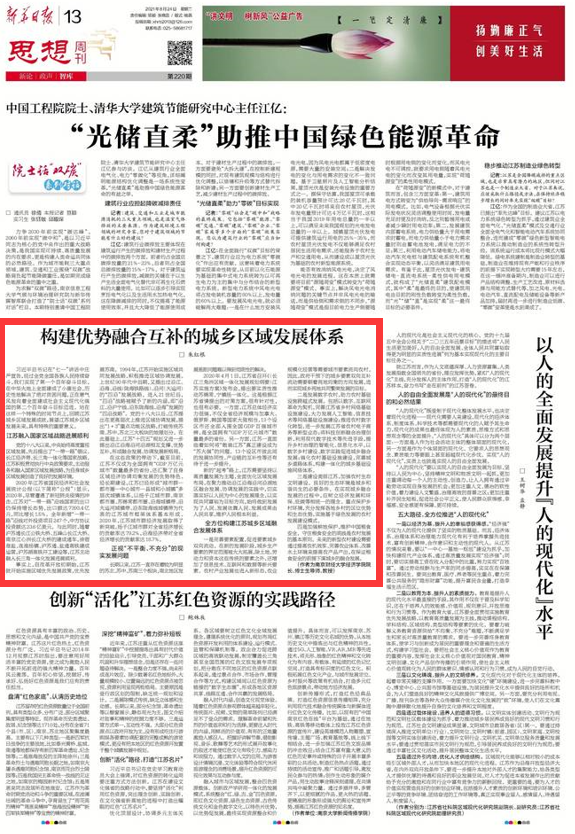 院长朱红根教授在新华日报《思想周刊》第220期上发表了题目为《构建优势融合互补的城乡区域发展体系》的署名文章。
