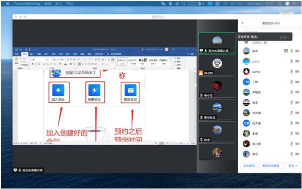 会议第二阶段,经济系主任陈杰对线上教学平台的使用技巧和经验做了分享与讲解。陈杰主任以腾讯会议为例,对平台功能和教学中常见问题的处理做了详细的演示和阐述,并完整地讲解了线上教学的全部流程。