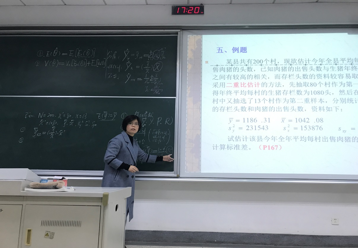 2021年11月9日上午,经济系教师观摩活动在德经楼116教室举行。赵爱栋老师就AD-AS模型展开讲解,赵老师授课具有亲和力,语言流畅,教学内容熟练,逻辑清晰,师生互动良好,PPT制作精致、与课堂教学内容契合得很好,课堂教学的各环节安排得当。11月10日下午,统计系开展了期中观摩教学活动,观摩学习了黄莉芳老师的“现代抽样技术”课程。黄老师讲解了二重抽样估计相关内容。该部分理论知识较深,黄老师采用板书推导的方式讲解重点和难点,同时对案例部分采用了PPT的方式授课。黄老师的教学深入浅出,突出重点,不断引发学生思考,授课逻辑清晰,内容详实,学生课堂互动良好。观摩结束后,两个系的老师就教学内容、教学方法等方面开展了深入而富有成效的交流与探讨,讨论如何挖掘课程思政元素,润物无声地实现课程育人。