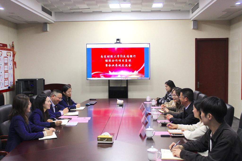 座谈会后,与会领导、老师和学生代表参观了交通银行栖霞中心支行营业部。