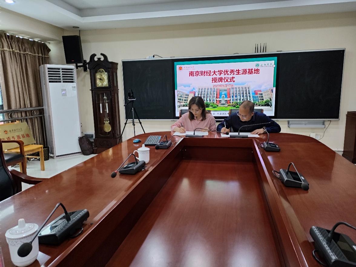 党委副书记贾亦璞、院长助理陈杰、教师叶丽芳、辅导员张闻来到江西省上饶中学签署“优质生源基地”合作协议并进行授牌仪式。