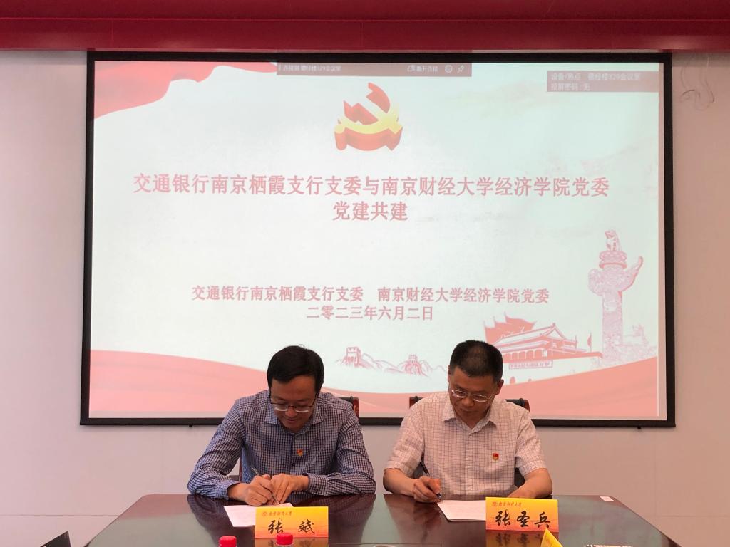 党委书记张圣兵和交通银行南京栖霞支行支部书记张斌代表双方党委(支部)签订了结对共建协议。