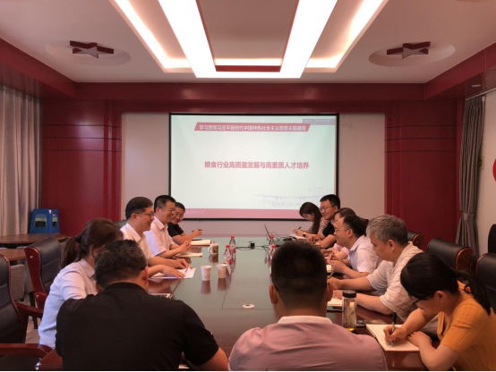 在德经楼329会议室召开学习贯彻习近平新时代中国特色社会主义思想主题教育专题讲座。江苏省粮食物资局人事处李通刚处长作高素质人才培养专题讲座,学院党委书记张圣兵、党委副书记贾亦璞、副院长崔向阳、刘小峰及系主任、党支部书记、辅导员参加学习。专题讲座由明星色情