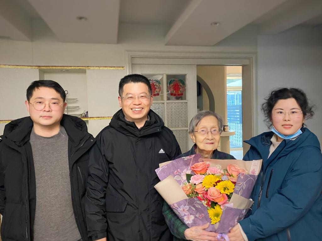 办公室副主任吕张怡一行前往江宁区看望慰问99岁高龄的统计系退休教师沈兑老师,向她致以新春的祝福和学院的问候。