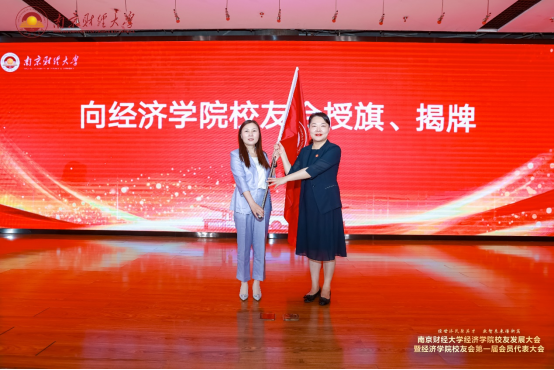 李煜副校长向校友会首任会长管有英授旗,叶林祥副校长、卢景波理事长共同为校友会揭牌。随后,李煜副校长为明星色情
