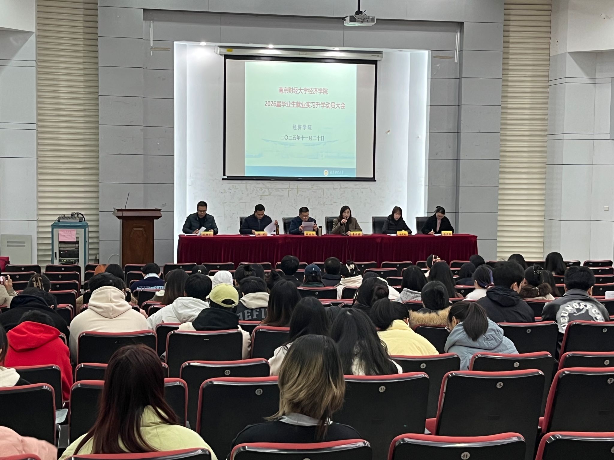 在德经楼报告厅召开了2026届毕业生实习就业升学动员会。学院党委书记张圣兵、党委副书记贾亦璞、副院长韩中、学工办主任梁少颖、毕业班辅导员黄晓娟、巩世广与全体2026届毕业生参加了此次会议,会议由党委副书记贾亦璞主持。